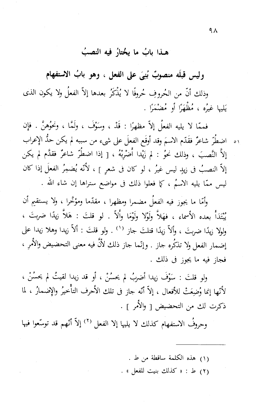 بابُ ما يخُتارُ فيه النصبُ وليس قبلَه منصوبٌ