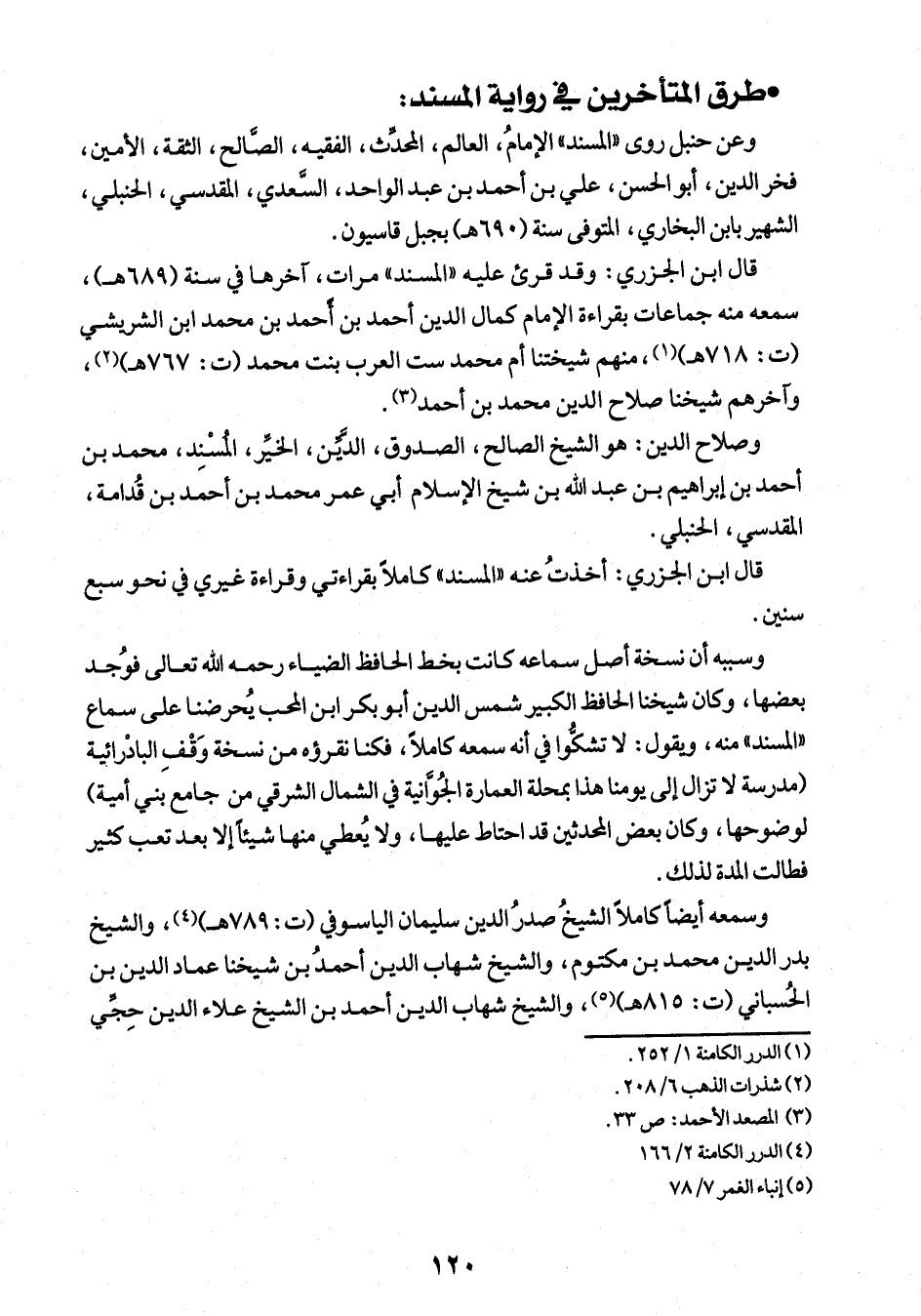 وعن حنبل روى "المسند" الإمامُ، العالم، المحدِّث، الفقيه، الصَّالح، الثقة، الأمين، فخر الدين، أبو الحسن، علي بن أحمد بن عبد الواحد، السَّعدي، المقدسى، الحنبلي، الشهير بابن البخاري، المتوفى سنة (690 هـ) بجبل قاسيون.