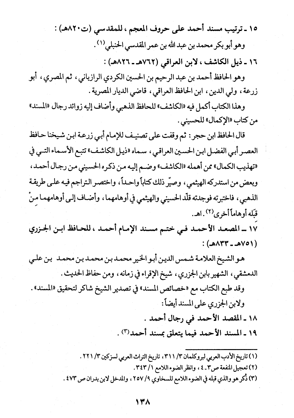 وهذا الكتاب أكمل فيه "الكاشف" للحافظ الذهبي وأضاف إليه زوائد رجال "المسند" من كتاب "الإكمال" للحسيني.