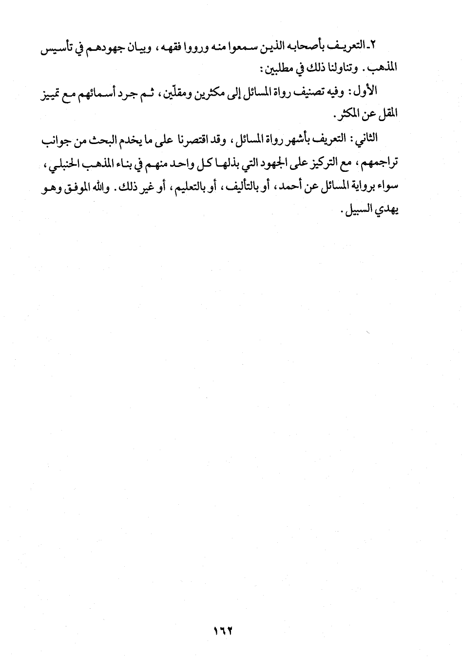 الثاني: التعريف بأشهر رواة المسائل، وقد اقتصرنا على ما يخدم البحث من جوانب تراجمهم، مع التركيز على الجهود التي بذلها كل واحد منهم في بناء المذهب الحنبلي، سواء برواية المسائل عن أحمد، أو بالتأليف، أو بالتعليم، أو غير ذلك. والله الموفق وهو يهدي السبيل.