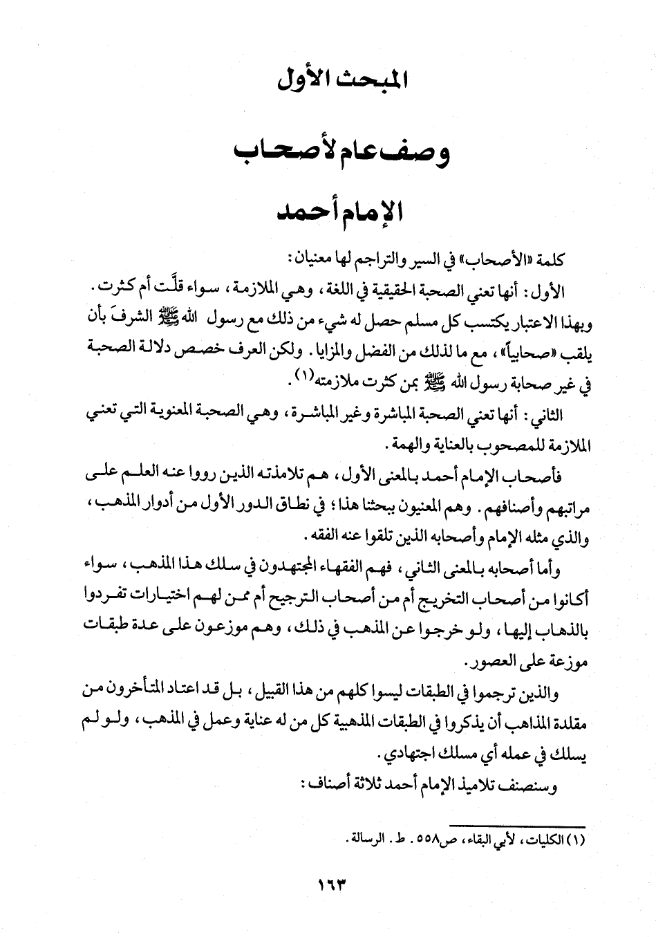 فأصحاب الإمام أحمد بالمعنى الأول، هم تلامذته الذين رووا عنه العلم على مراتبهم وأصنافهم. وهم المعنيون ببحثنا هذا؛ في نطاق الدور الأول من أدوار المذهب، والذي مثله الإمام وأصحابه الذين تلقوا عنه الفقه.