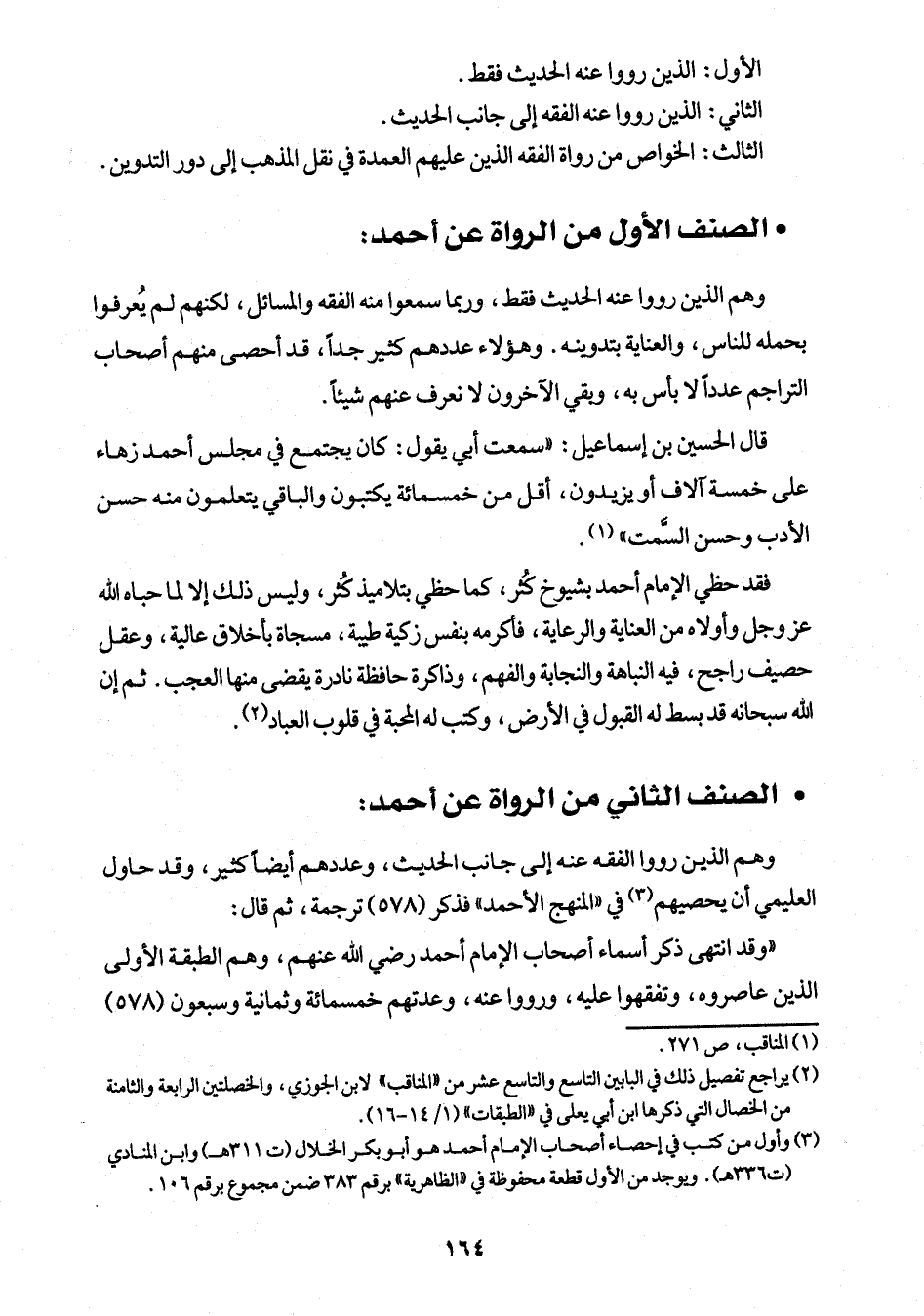 (¬3) وأول من كتب في إحصاء أصحاب الإمام أحمد هو أبو بكر الخلال (ت 311 هـ) وابن المنادي (ت 336 هـ). ويوجد من الأول قطعة محفوظة في "الظاهرية" برقم 383 ضمن مجموع برقم 106.