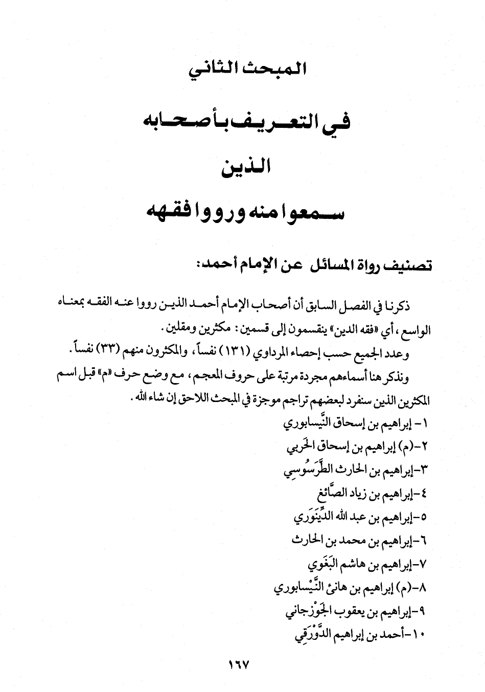 ذكرنا في الفصل السابق أن أصحاب الإمام أحمد الذين رووا عنه الفقه بمعناه الواسع، أي "فقه الدين" ينقسمون إلى قسمين: مكثرين ومقلين.