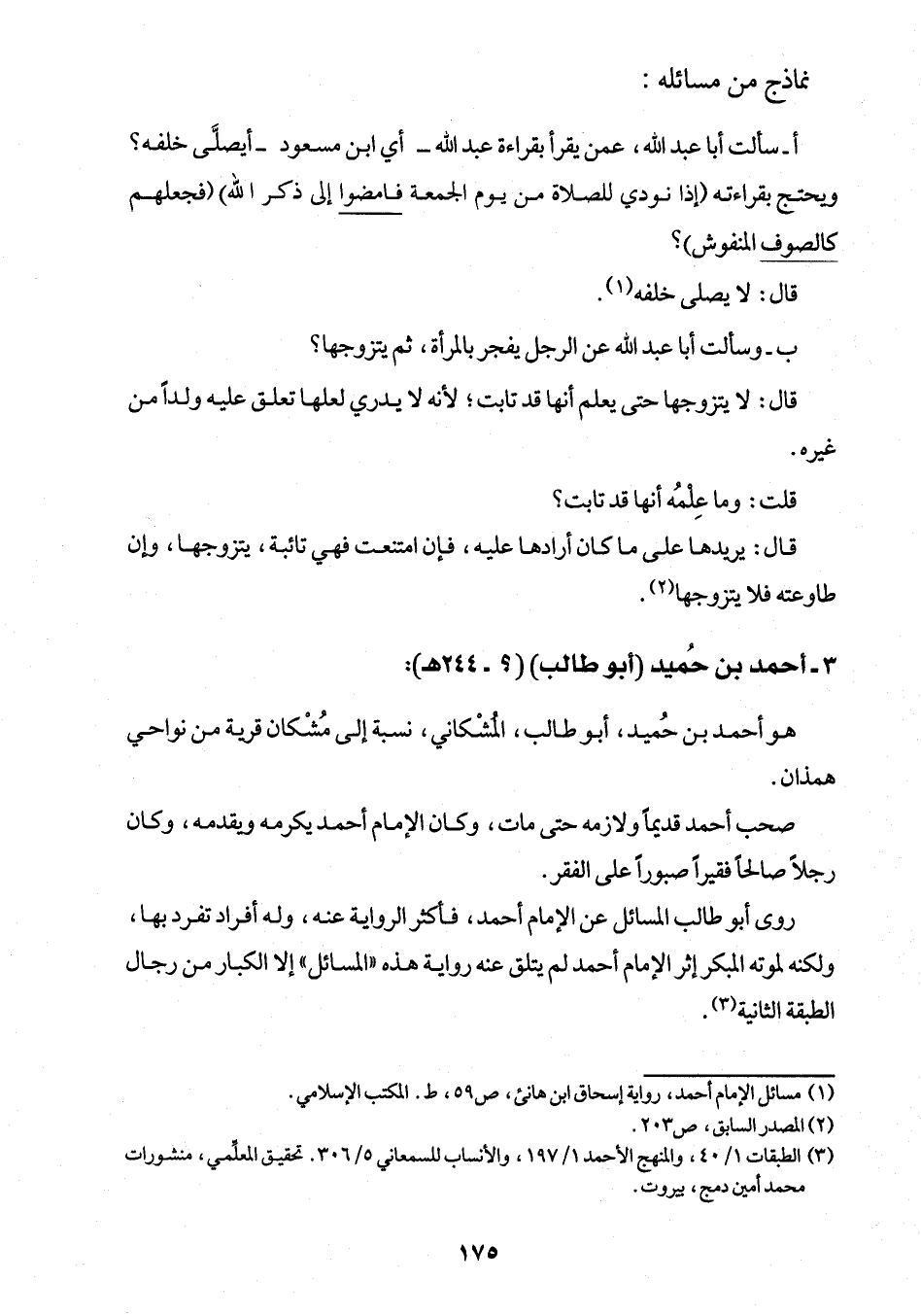 (¬1) مسائل الإمام أحمد، رواية إسحاق ابن هانئ، ص 59، ط. المكلتب الإسلامي.