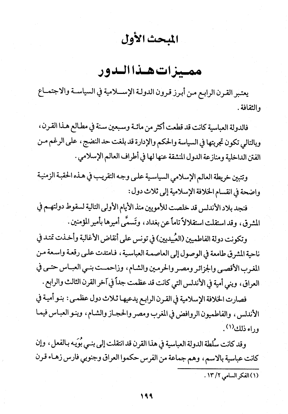 فالدولة العباسية كانت قد قطعت أكثر من مائة وسبعين سنة في مطالع هذا القرن، ويالتالي تكون تجربتها في السياسة والحكم والإدارة قد بلغت حد النضج، على الرغم من الفتن الداخلية ومنازعة الدول المنشقة عنها لها في أطراف العالم الإسلامي.