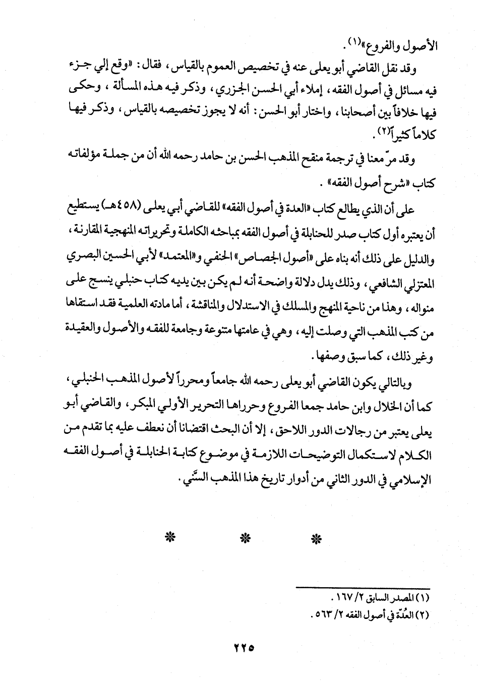 ويالتالي يكون القاضي أبو يعلى -رَحِمَهُ اللهُ- جامعا ومحرراً لأصول المذهب الحنبلي، كما أن الخلال وابن حامد جمعا الفروع وحرراها التحرير الأولي المبكر، والقاضي أبو يعلى يعتبر من رجالات الدور اللاحق، إلا أن البحث اقتضانا أن نعطف عليه بما تقدم من الكلام لاستكمال التوضيحات اللازمة في موضوع كتابة الحنابلة في أصول الفقه الإسلامي في الدور الثاني من أدوار تاريخ هذا المذهب السَّني.