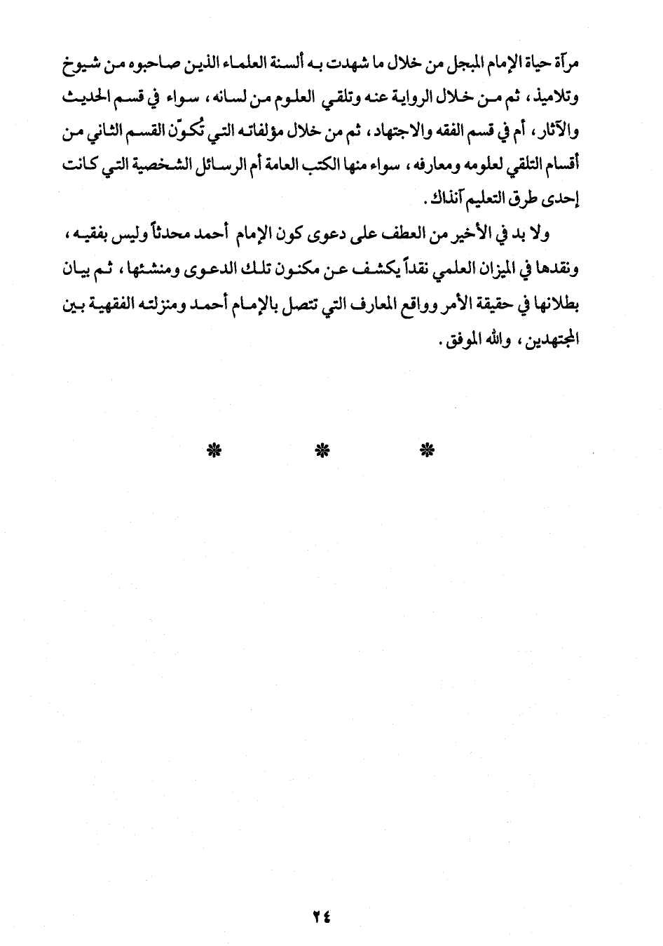 ولابد في الأخير من العطف على دعوى كون الإمام أحمد محدثًا وليس بفقيه، ونقدها في الميزان العلمي نقدًا يكشف عن مكنون تلك الدعوى ومنشئها، ثم بيان بطلانها في حقيقة الأمر وواقع المعارف التي تتصل بالإمام أحمد ومنزلته الفقهية بين المجتهدين، والله الموفق.
