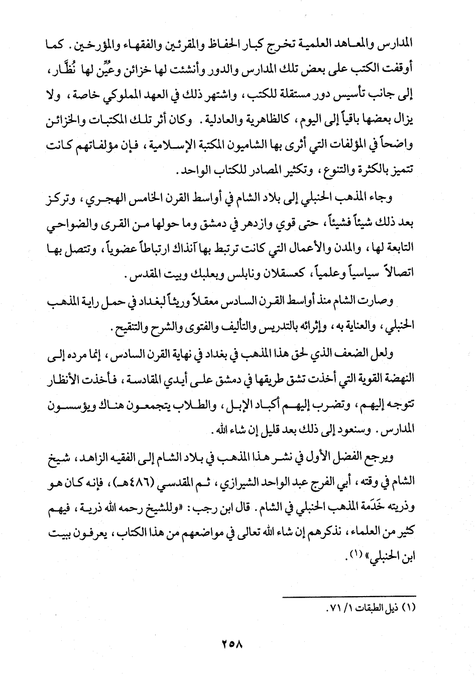 وصارت الشام منذ أواسط القرن السادس معقلًا وريثًا لبغداد في حمل راية المذهب الحنبلي، والعناية به، وإثرائه بالتدريس والتأليف والفتوى والشرح والتنقيح.