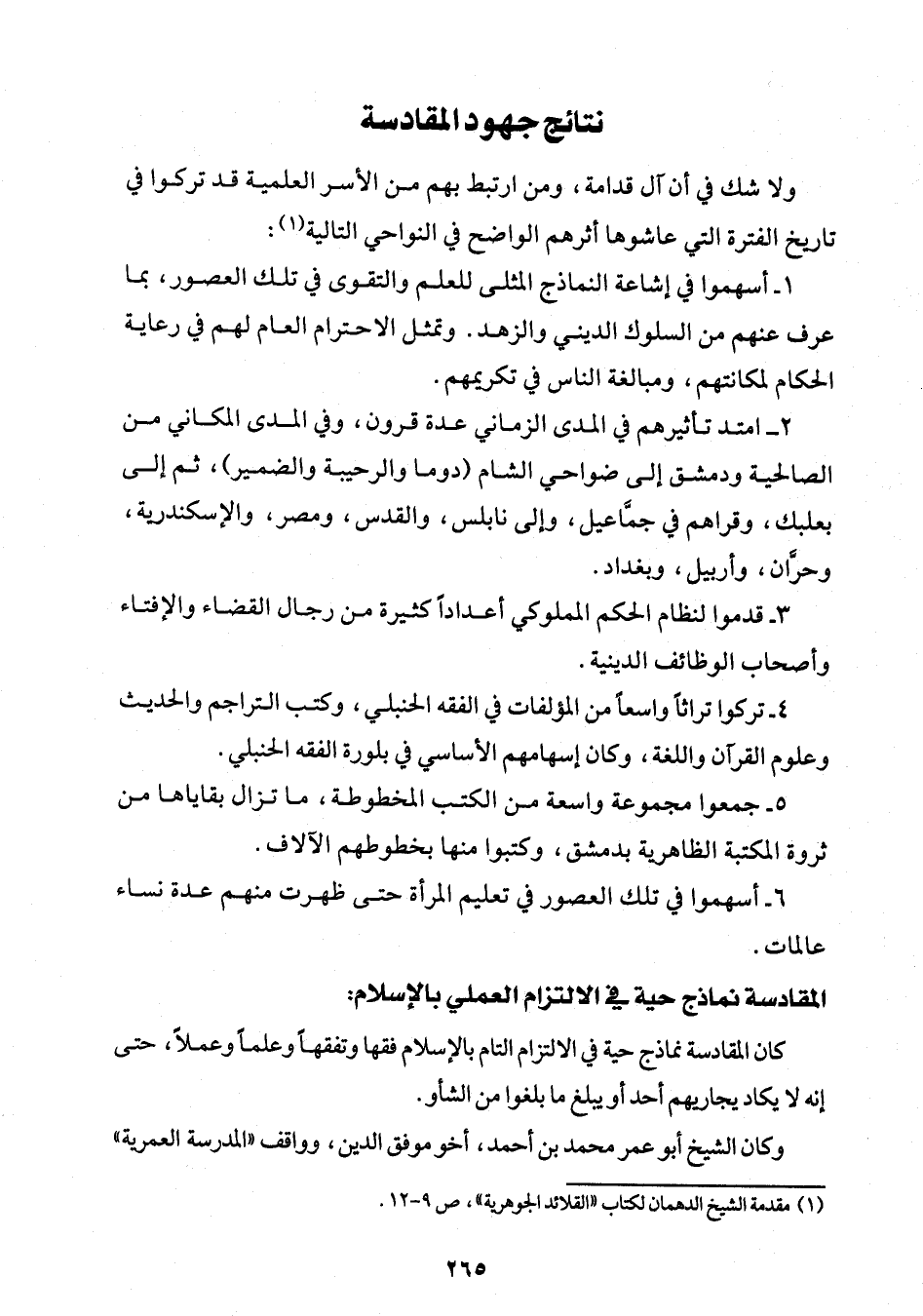 كان المقادسة نماذج حية في الإلتزام التام بالإسلام فقها وتفقها وعلما وعملًا، حتى إنه لا يكاد يجاريهم أحد أو ييلغ ما بلغوا من الشأو.