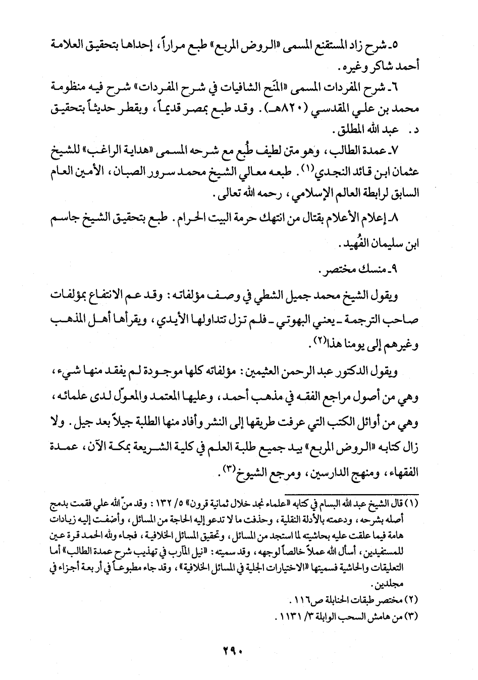 5 - شرح زاد المستقنع المسمى "الروض المربع" طبع مرارًا، إحداها بتحقيق العلامة أحمد شاكر وغيره.