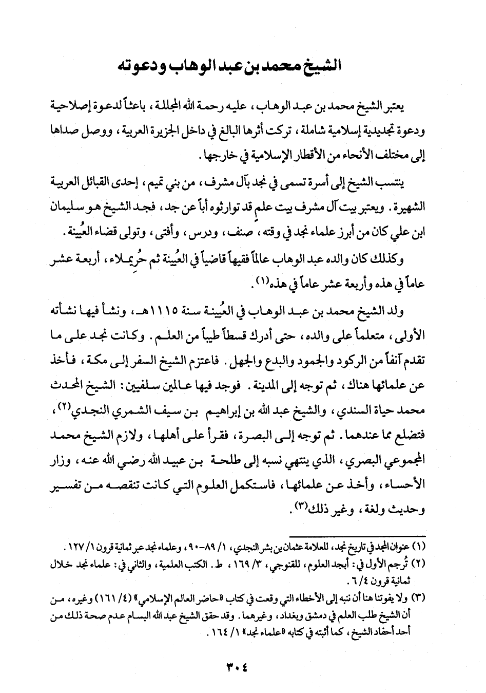(¬3) ولا يفوتنا هنا أن ننبه إلى الأخطاء الي وقعت في كتاب "حاضر العالم الإسلامي" (4/ 161) وغيره، من أن الشيخ طلب العلم في دمشق وبغداد، وغيرهما. وقد حقق الشيخ عبد الله البسام عدم صحة ذلك من أحد أحفاد الشيخ، كما أثبته في كتابه "علماء نجد" 1/ 164.