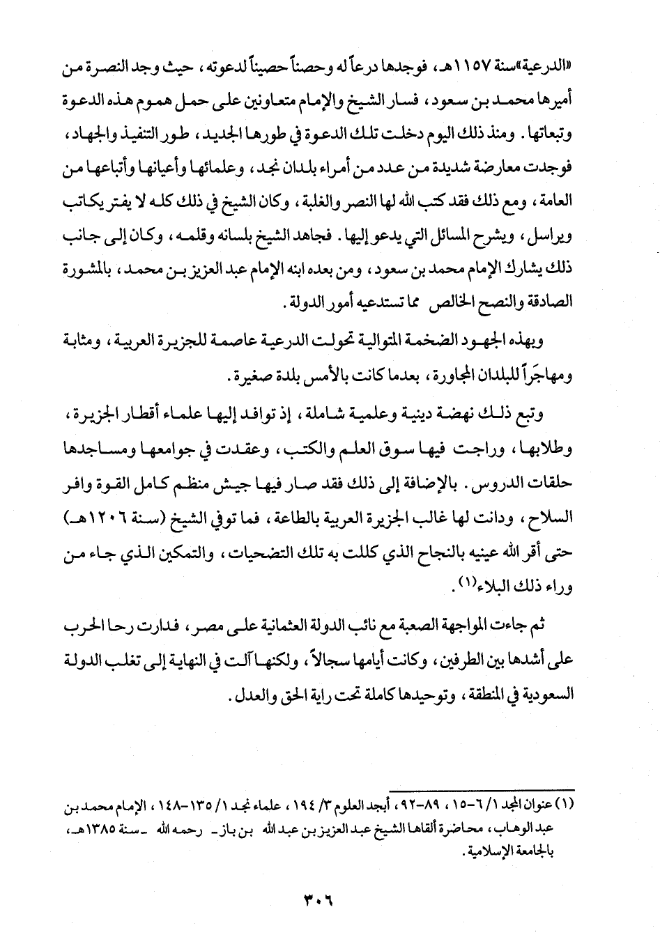 ويهذه الجهود الضخمة المتوالية تحولت الدرعية عاصمة للجزيرة العربية، ومثابة ومهاجَراً للبلدان المجاورة، بعدما كانت بالأمس بلدة صغيرة.