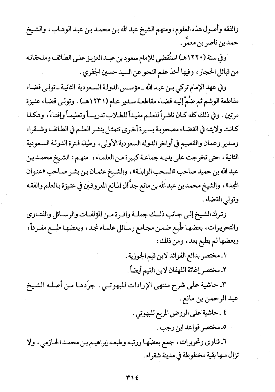والفقه وأصول هذه العلوم، ومنهم الشيخ عبد الله بن محمد بن عبد الوهاب، والشيخ حمد بن ناصر بن معمَّر.