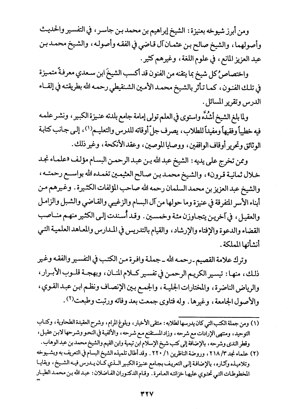 (¬2) علماء نجد 3/ 218، وروضة الناظرين 1/ 220. وقد أطال تلميذه الشيخ البسام في التعريف به وبشيوخه وتلاميذه وآثاره، بالإضافة إلى التعريف بجاهع عنيزة الكبير الذي كان يدرس فيه الشيخ، وبقايا المخطوطات التي تحتوي عليها خزائته العامرة. وقام الدكتوران الفاضلان: عبد الله بن محمد الطيار =