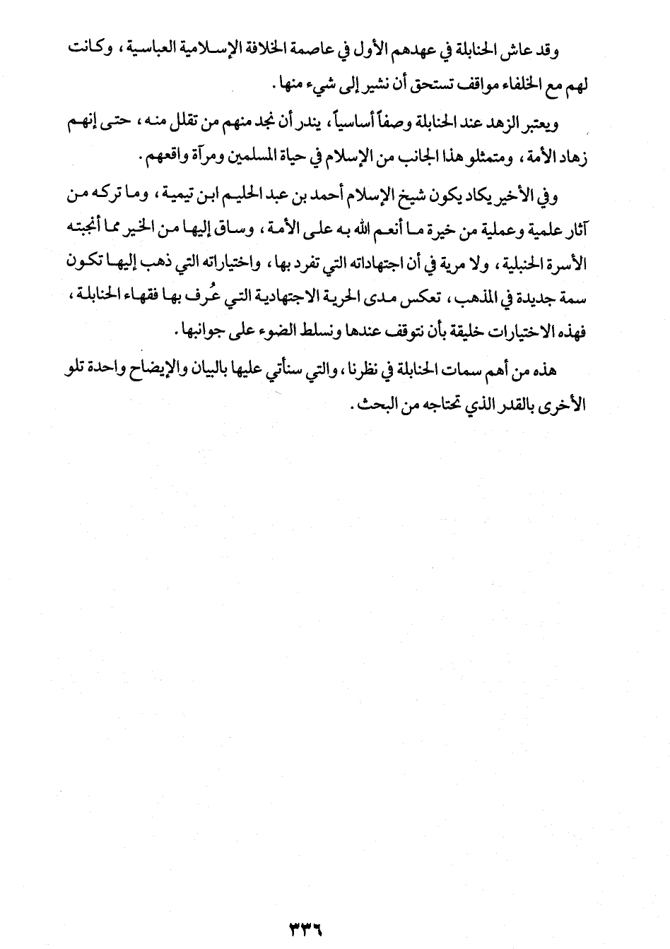 وفي الأخير يكاد يكون شيخ الإسلام أحمد بن عبد الحليم ابن تيمية، وما تركه من آثار علمية وعملية من خيرة ما أنعم الله به على الأمة، وساق إليها من الخير مما أنجبته الأسرة الحنبلية، ولا مرية في أن اجتهاداته التي تفرد بها، واختياراته التي ذهب إليها تكون سمة جديدة في المذهب، تعكس مدى الحرية الإجتهادية التي عُرف بها فقهاء الحنابلة، فهذه الإختيارات خليقة بأن نتوقف عندها ونسلط الضوء على جوانبها.