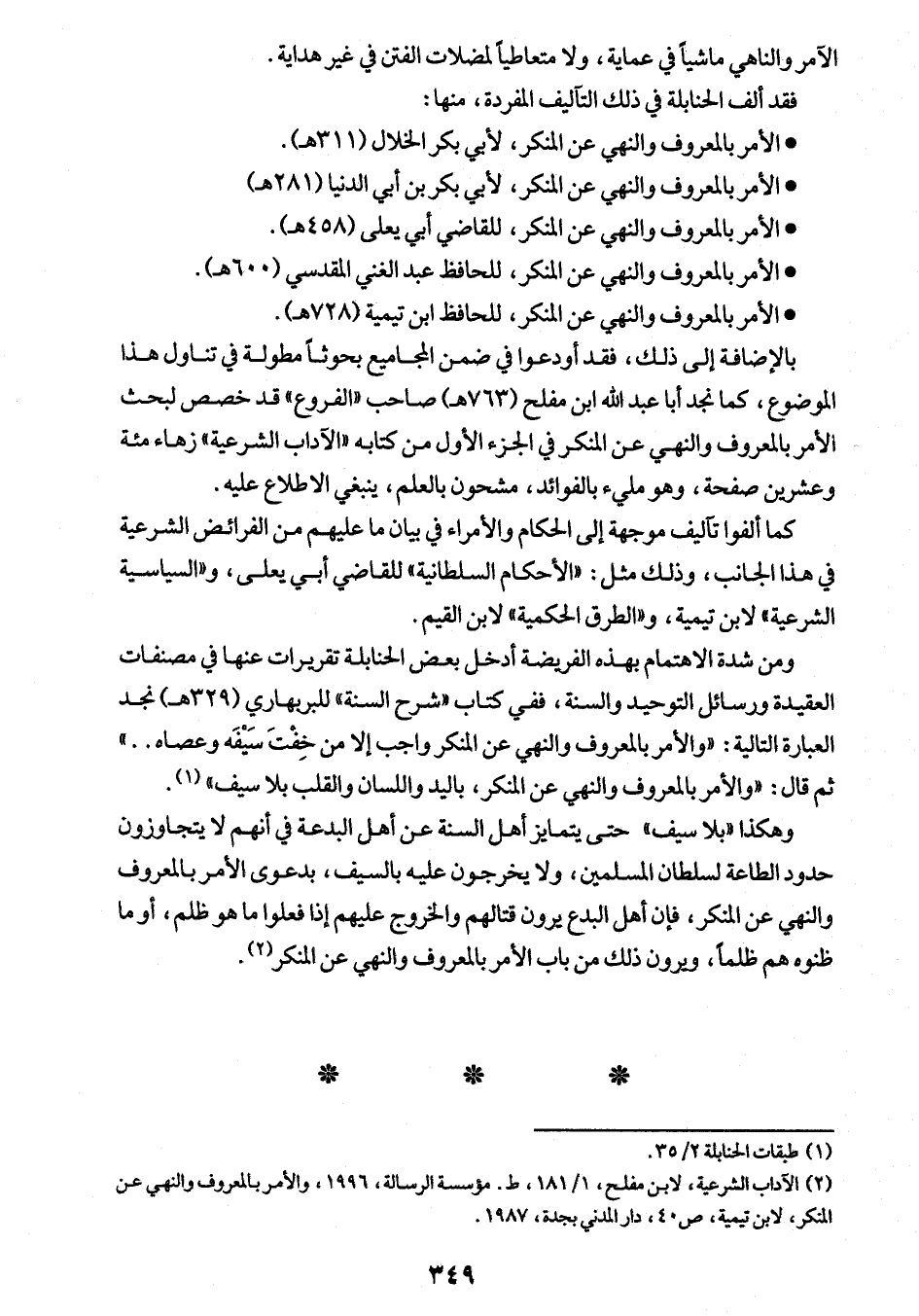 (¬2) الآداب الشرعية، لإبن مفلح، 1/ 181، ط. مؤسسة الرسالة، 1996، والأمر بالمعروف والنهي عن المنكر، لإبن تيمية، ص 40، دار المدني بجدة، 1987.
