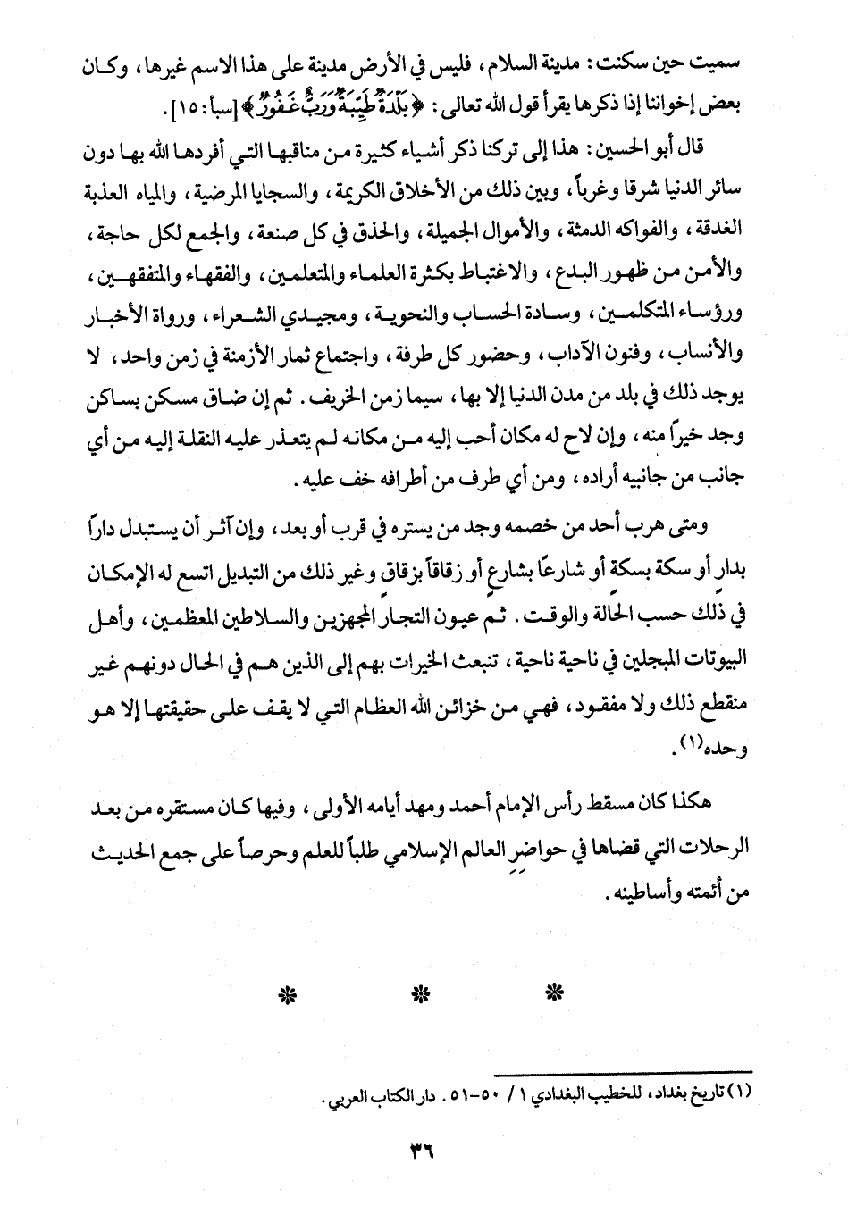 (¬1) تاريخ بغداد، للخطيب البغدادي 1/ 50 - 51. دار الكتاب العربي.