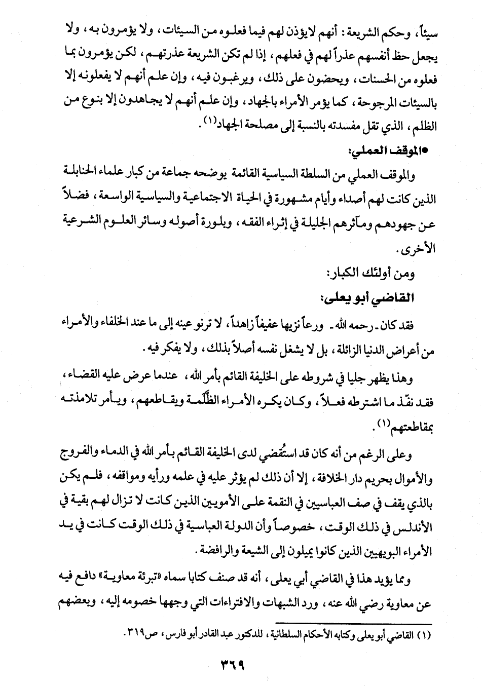 (¬1) القاضي أبو يعلى وكتابه الأحكام السلطانية، للدكتور عبد القادر أبو فارس، ص 319.