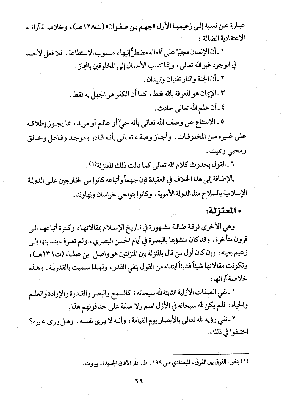 (¬1) ينظر: الفرق بين الفرق، للبغدادي ص 199. ط. دار الآفاق الجديدة، بيروت.