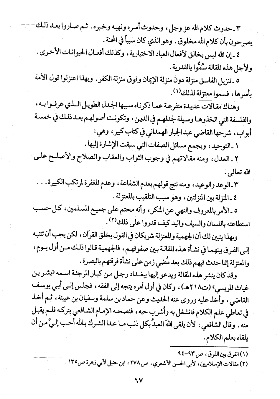 (¬2) مقالات الإسلاميين، لأبي الحسن الأشعري، ص 278، ابن حنبل لأبي زهرة ص 135.