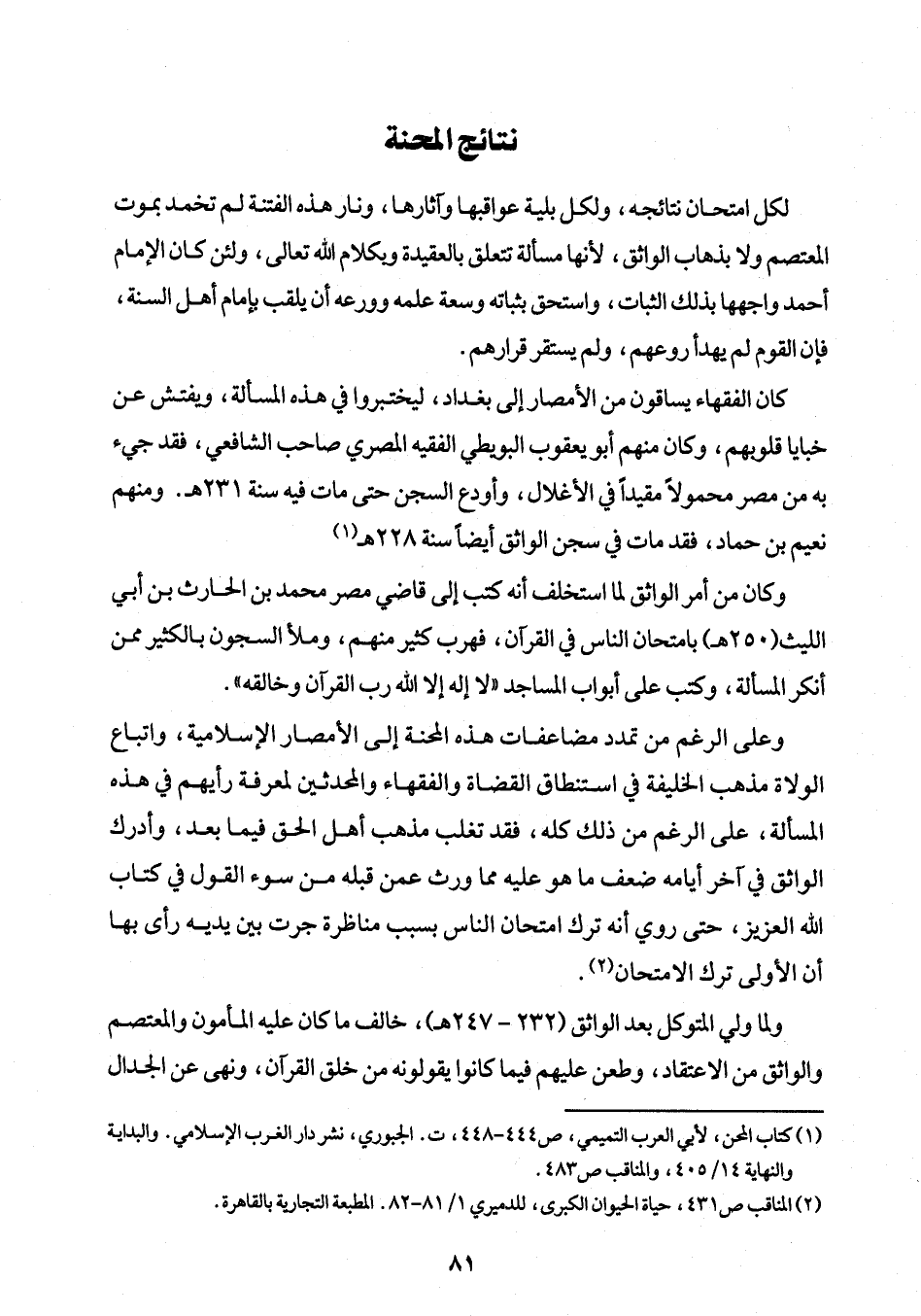 (¬1) كتاب المحن، لأبي العرب التميمي، ص 444 - 448، ت. الجبوري، نشر دار الغرب الإسلامي. والبداية والنهاية 14/ 405، والمناقب ص 483.