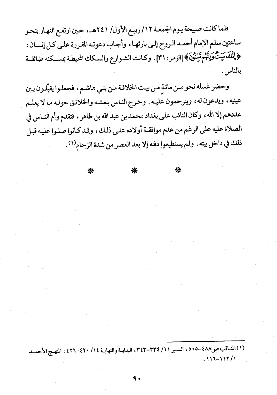 (¬1) المناقب ص 488 - 505، السير 11/ 334 - 343، البداية والنهاية 14/ 420 - 426، المنهج الأحمد 1/ 112 - 116.