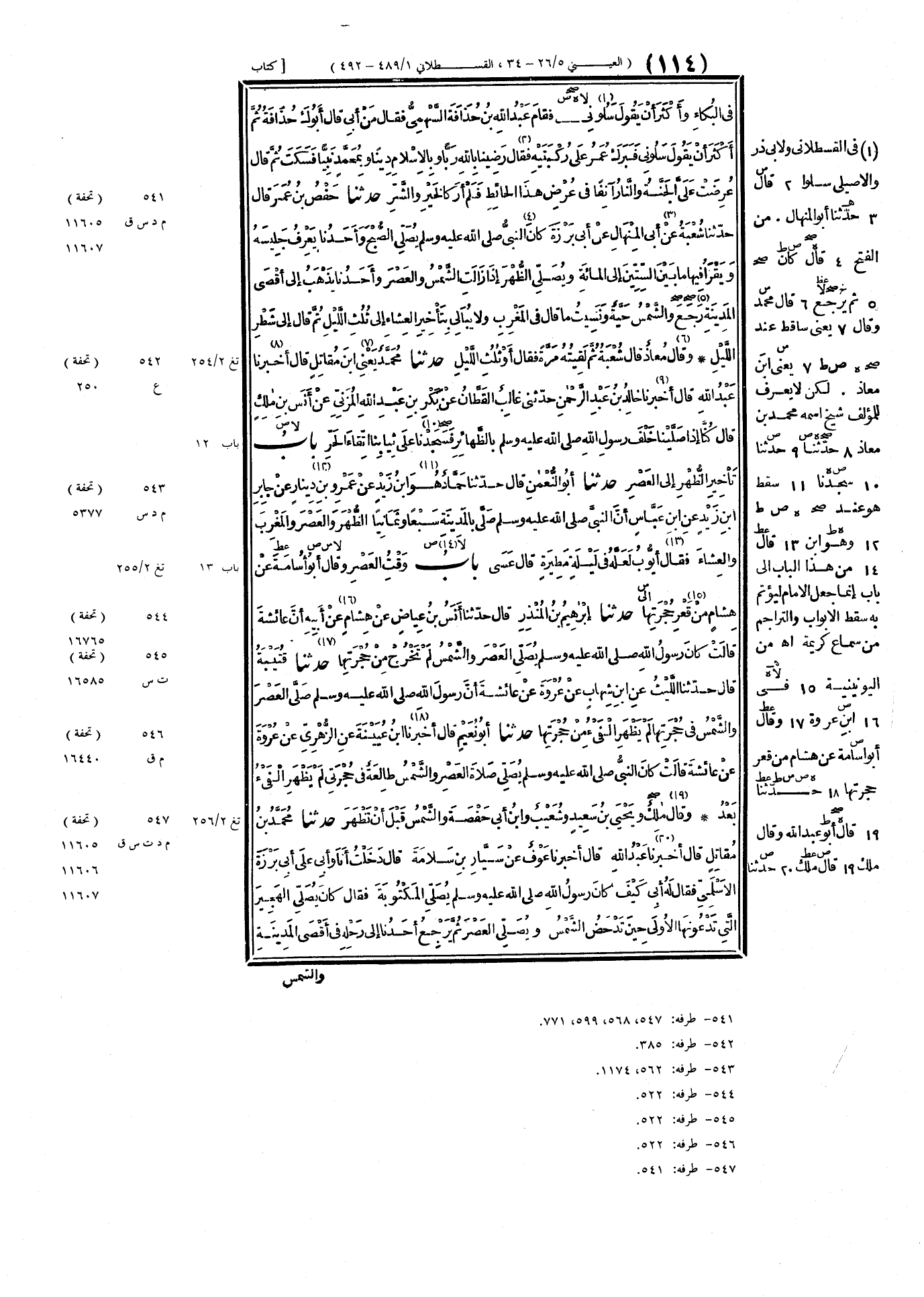 (وأحدنا يعرف جليسه) مجالسه الذي إلى جنبه عندما ينتهي من الصلاة. (إلى المائة) يعني من آيات القرآن الكريم. (زالت) مالت إلى جهة المغرب. (حية) بيضاء لم يتغير لونها ولا حرها. (شطر) نصف]