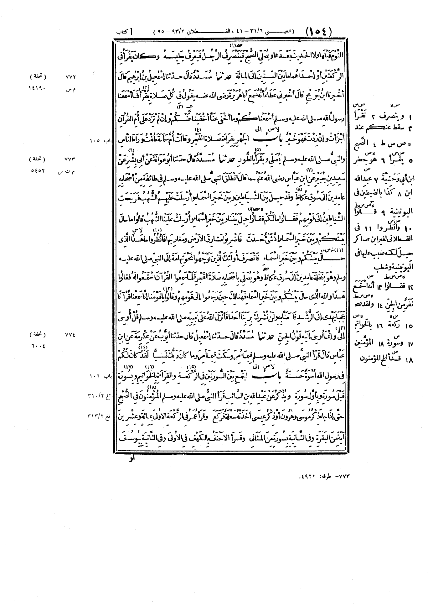 [ ش (بالخواتيم) أواخر السور. (بسورة قبل سورة) مخالفا لترتيب المصحف العثماني. (المؤمنون) بسورة (المؤمنون). (ذكر موسى وهارون) أي قوله تعالى {ثم أرسلنا موسى وأخاه هارون}. الأية ٤٥. (فركع) أي ولم يتم السورة. (المثاني) هي السور التي لم تبلغ مائة آية سميت مثاني لأنها ثنت المئين أي أتت بعدها وقيل غير ذلك. (الأحنف) بن قيس بن معد كرب الصحابي رضي الله عنه. (المفصل) من سورة محمد - صلى الله عليه وسلم - حتى آخر القرأن وقيل غير ذلك]
