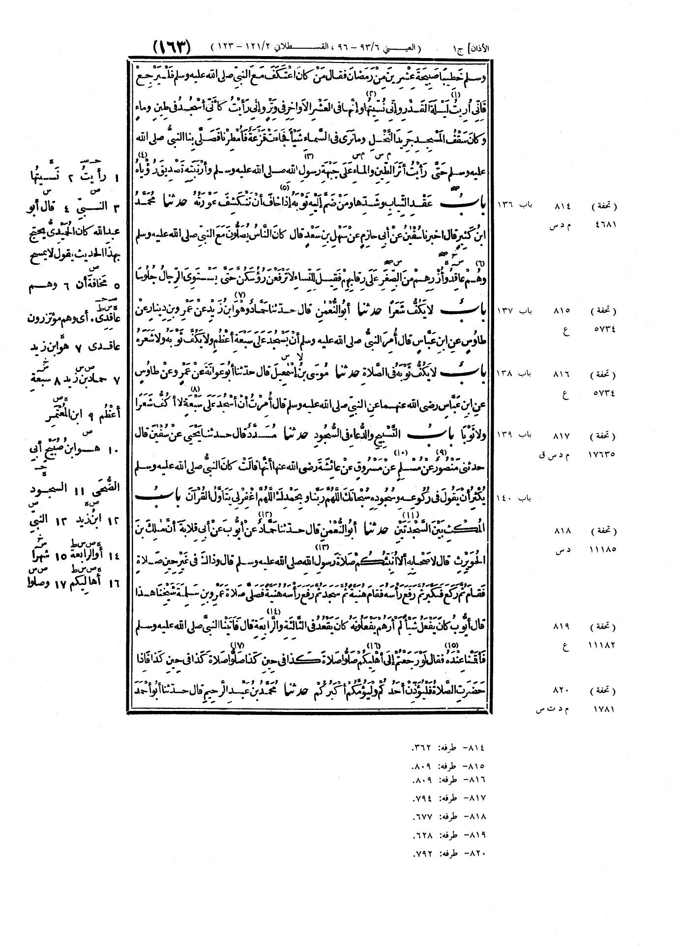 ٨١٤ - حَدَّثَنَا مُحَمَّدُ بْنُ كَثِيرٍ، قَالَ: أَخْبَرَنَا سُفْيَانُ، عَنْ أَبِي حَازِمٍ، عَنْ سَهْلِ بْنِ سَعْدٍ، قَالَ: كَانَ النَّاسُ يُصَلُّونَ مَعَ النَّبِيِّ صَلَّى اللهُ عَلَيْهِ وَسَلَّمَ، وَهُمْ عَاقِدُوا أُزْرِهِمْ مِنَ الصِّغَرِ عَلَى رِقَابِهِمْ، فَقِيلَ لِلنِّسَاءِ: «لَا تَرْفَعْنَ رُءُوسَكُنَّ حَتَّى يَسْتَوِيَ الرِّجَالُ جُلُوسًا»