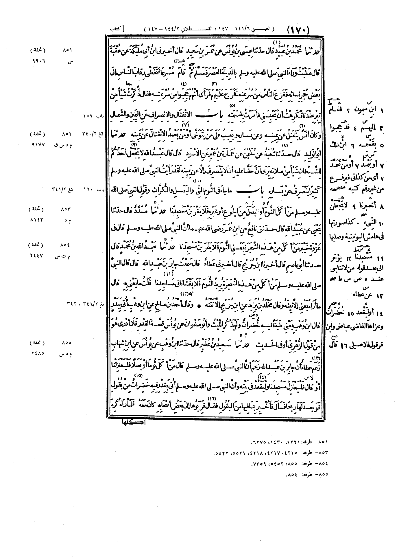 وَأَنَّ النَّبِيَّ صَلَّى اللهُ عَلَيْهِ وَسَلَّمَ أُتِيَ بِقِدْرٍ فِيهِ خَضِرَاتٌ مِنْ بُقُولٍ، فَوَجَدَ لَهَا رِيحًا، فَسَأَلَ فَأُخْبِرَ بِمَا فِيهَا مِنَ البُقُولِ، فَقَالَ: «قَرِّبُوهَا». إِلَى بَعْضِ أَصْحَابِهِ كَانَ مَعَهُ، فَلَمَّا رَآهُ كَرِهَ ⦗١٧١⦘ أَكْلَهَا، قَالَ: «كُلْ فَإِنِّي أُنَاجِي مَنْ لَا تُنَاجِي» وَقَالَ أَحْمَدُ بْنُ صَالِحٍ: عَنْ ابْنِ وَهْبٍ أُتِيَ بِبَدْرٍ - وَقَالَ ابْنُ وَهْبٍ: يَعْنِي طَبَقًا فِيهِ خَضِرَاتٌ - وَلَمْ يَذْكُرِ اللَّيْثُ، وَأَبُو صَفْوَانَ، عَنْ يُونُسَ، قِصَّةَ القِدْرِ فَلَا أَدْرِي هُوَ مِنْ قَوْلِ الزُّهْرِيِّ أَوْ فِي الحَدِيثِ