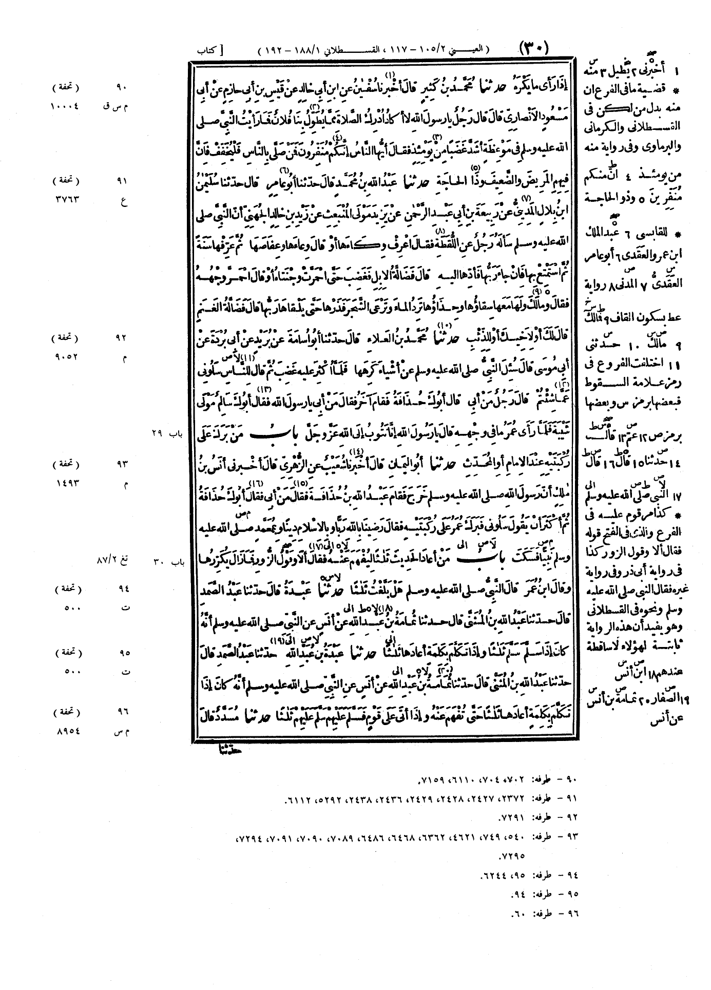 ٩٢ - حَدَّثَنَا مُحَمَّدُ بْنُ العَلَاءِ، قَالَ: حَدَّثَنَا أَبُو أُسَامَةَ، عَنْ بُرَيْدٍ، عَنْ أَبِي بُرْدَةَ، عَنْ أَبِي مُوسَى، قَالَ: سُئِلَ النَّبِيُّ صَلَّى اللهُ عَلَيْهِ وَسَلَّمَ عَنْ أَشْيَاءَ كَرِهَهَا، فَلَمَّا أُكْثِرَ عَلَيْهِ غَضِبَ، ثُمَّ قَالَ لِلنَّاسِ: «سَلُونِي عَمَّا شِئْتُمْ» قَالَ رَجُلٌ: مَنْ أَبِي؟ قَالَ: «أَبُوكَ حُذَافَةُ» فَقَامَ آخَرُ فَقَالَ: مَنْ أَبِي يَا رَسُولَ اللَّهِ؟ فَقَالَ: «أَبُوكَ سَالِمٌ مَوْلَى شَيْبَةَ» فَلَمَّا رَأَى عُمَرُ مَا فِي وَجْهِهِ قَالَ: يَا رَسُولَ اللَّهِ، إِنَّا نَتُوبُ إِلَى اللَّهِ عَزَّ وَجَلَّ
