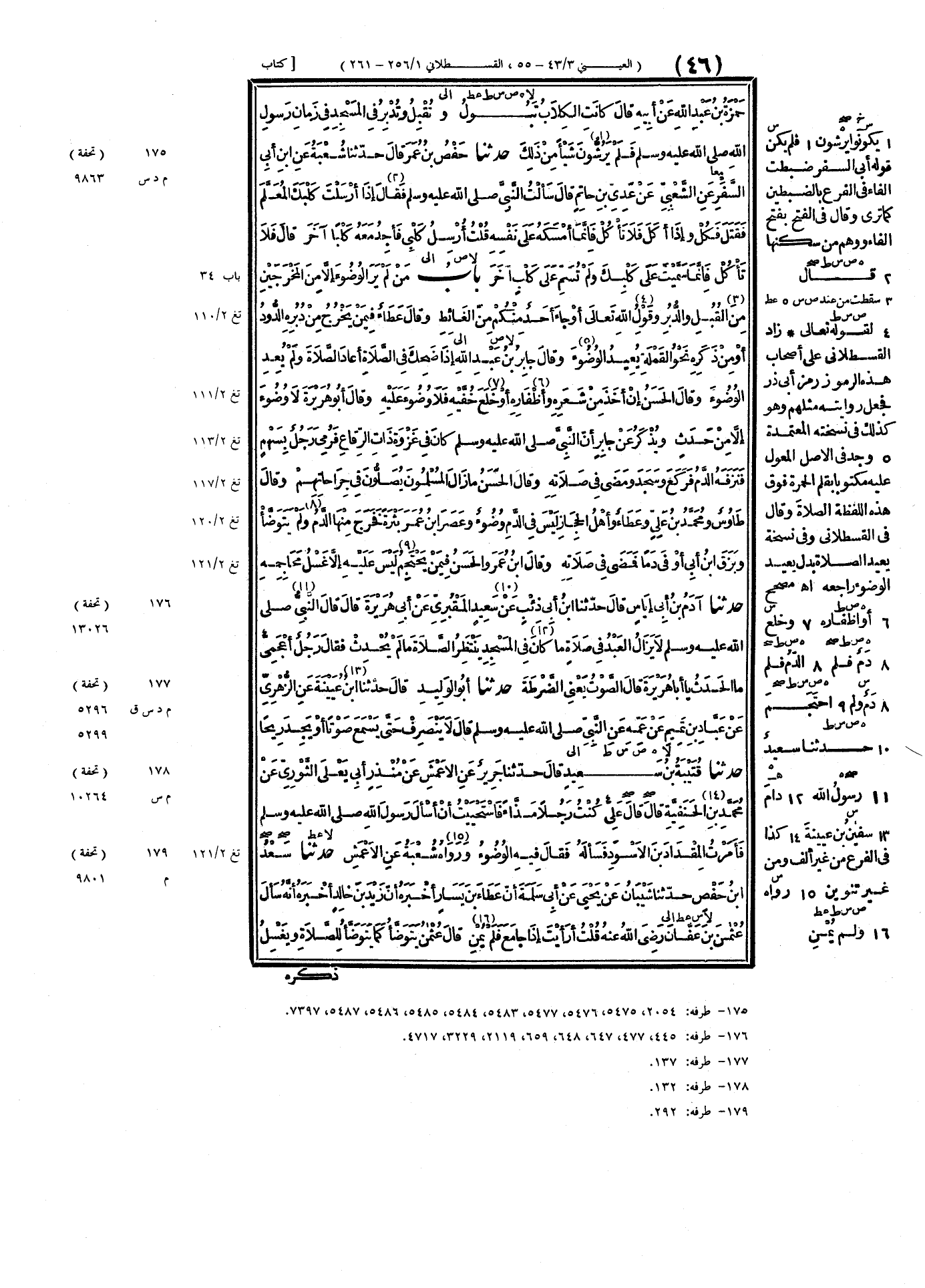 [ ش (الغائط) هو المكان المنخفض تقضى فيه الحاجة عادة ويطلق على الخارج من دبر الإنسان (الحسن) هو الحسن البصري رحمه الله تعالى. (ذات الرقاع) سميت بذلك لأن أقدامهم تشققت فلفوا عليها الخرق وقيل غير ذلك. (رجل) هو عباد بن بشر رضي الله عنه. (فنزفه) سال منه بكثرة. (مضى) استمر بها حتى انتهت. (بثرة) خراج صغير. (محاجمه) جمع محجمة وهي مكان خروج الدم]