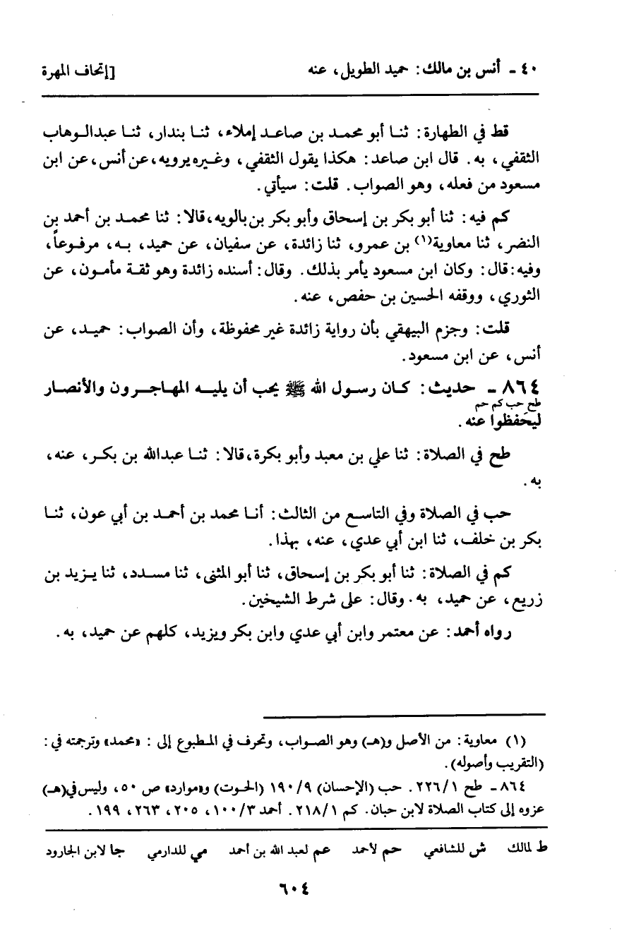 رَوَاهُ أَحْمَدُ: عَنْ مُعْتَمِرٍ، وَابْنِ أَبِي عَدِيٍّ , وَابْنِ بَكْرٍ , وَيَزِيدَ , كُلُّهُمْ عَنْ حُمَيْدٍ، بِهِ.