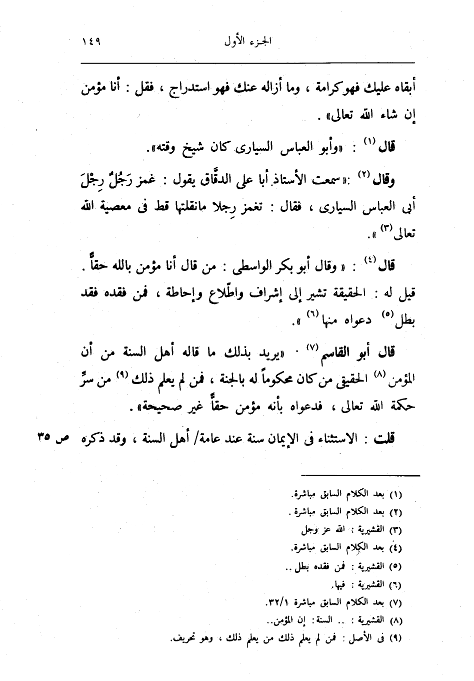 قَالَ أَبُو الْقَاسِم يُرِيد بذلك مَا قَالَه أهل السّنة من أَن الْمُؤمن الْحَقِيقِيّ من كَانَ مَحْكُومًا لَهُ بِالْجنَّةِ فَمن لم يعلم ذَلِك من سر حِكْمَة الله تَعَالَى فدعواه بِأَنَّهُ مُؤمن حَقًا غير صَحِيحَة