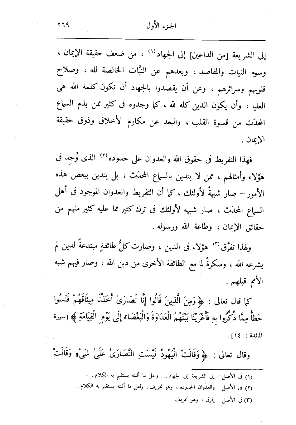 كَمَا قَالَ تَعَالَى وَمن الَّذين قَالُوا إِنَّا نَصَارَى أَخذنَا ميثاقهم فنسوا حظا مِمَّا ذكرُوا بِهِ فأعرينا بَينهم الْعَدَاوَة والبغضاء إِلَى يَوْم الْقِيَامَة [سُورَة الْمَائِدَة 14]