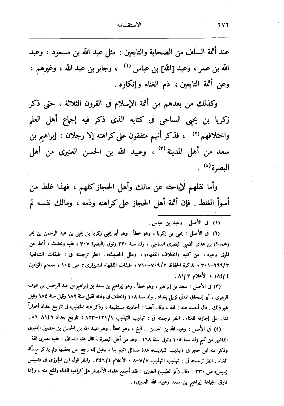 وَكَذَلِكَ من بعدهمْ من أَئِمَّة الْإِسْلَام فِي الْقُرُون الثَّلَاثَة حَتَّى ذكر زَكَرِيَّا بن يحيى السَّاجِي فِي كِتَابه الَّذِي ذكر فِيهِ إِجْمَاع أهل الْعلم وَاخْتِلَافهمْ فَذكر أَنهم متفقون على كَرَاهَته إِلَّا رجلَانِ إِبْرَاهِيم بن سعد من أهل الْمَدِينَة وَعبيد بن الْحسن الْعَنْبَري من أهل الْبَصْرَة