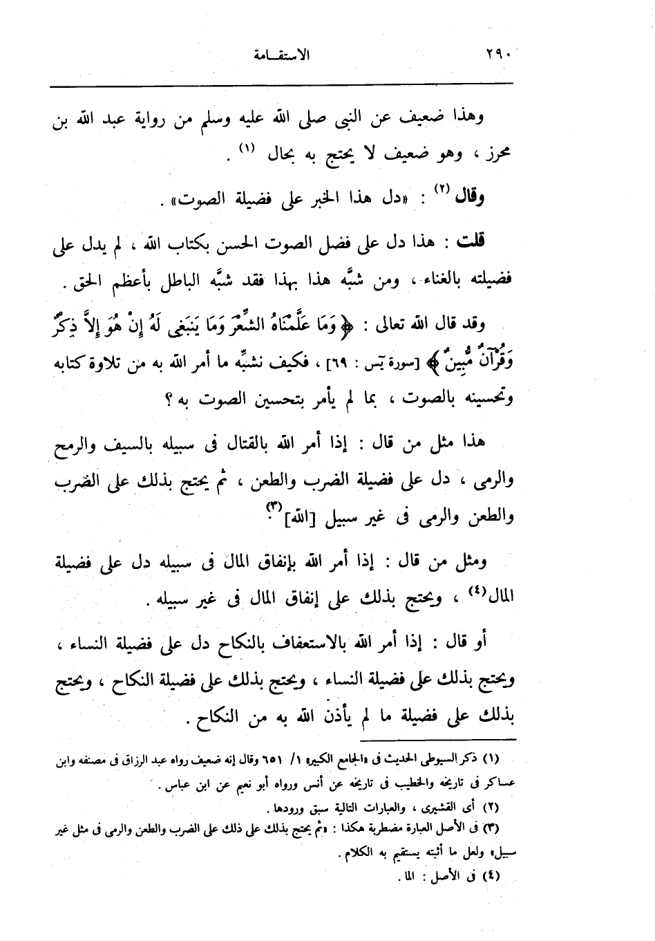 قلت هَذَا دلّ على فضل الصَّوْت الْحسن بِكِتَاب الله لم يدل على فضيلته بِالْغنَاءِ وَمن شبه هَذَا بِهَذَا فقد شبه الْبَاطِل بأعظم الْحق