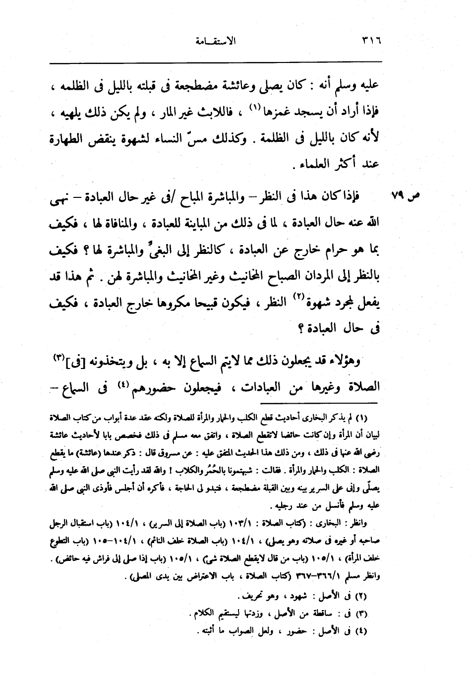 فَإِذا كَانَ هَذَا فِي النّظر والمباشرة الْمُبَاح فِي غير حَال الْعِبَادَة نهى الله عَنهُ حَال الْعِبَادَة لما فِي ذَلِك من المباينة لِلْعِبَادَةِ والمنافاة لَهَا فَكيف بِمَا هُوَ حرَام خَارج عَن الْعِبَادَة كالنظر إِلَى الْبَغي والمباشرة لَهَا فَكيف بِالنّظرِ إِلَى المردان الصَّباح المخانيث وَغير المخانيث والمباشرة لَهُنَّ ثمَّ هَذَا قد يفعل لمُجَرّد شَهْوَة النّظر فَيكون قبيحا مَكْرُوها خَارج الْعِبَادَة فَكيف فِي حَال الْعِبَادَة