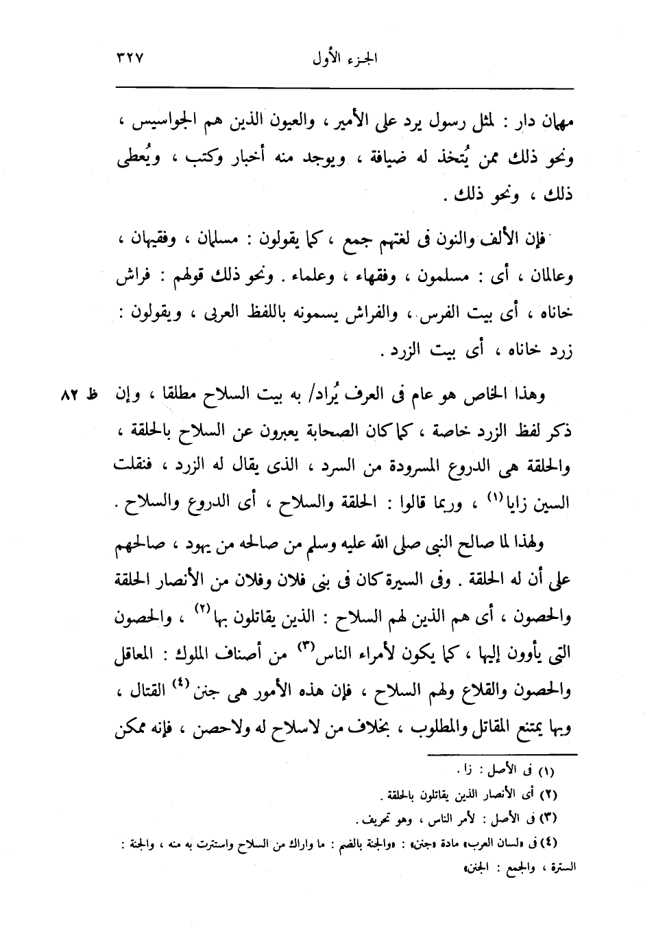 وَهَذَا الْخَاص هُوَ عَام فِي الْعرف يُرَاد بِهِ بَيت السِّلَاح مُطلقًا وَإِن ذكر لفظ الزرد خَاصَّة كَمَا كَانَ الصَّحَابَة يعبرون عَن السِّلَاح بالحلقة وَالْحَلقَة هِيَ الدروع المسرودة من السرد الَّذِي يُقَال لَهُ الزرد فنقلت السِّين زايا وَرُبمَا قَالُوا الْحلقَة وَالسِّلَاح أَي الدروع وَالسِّلَاح