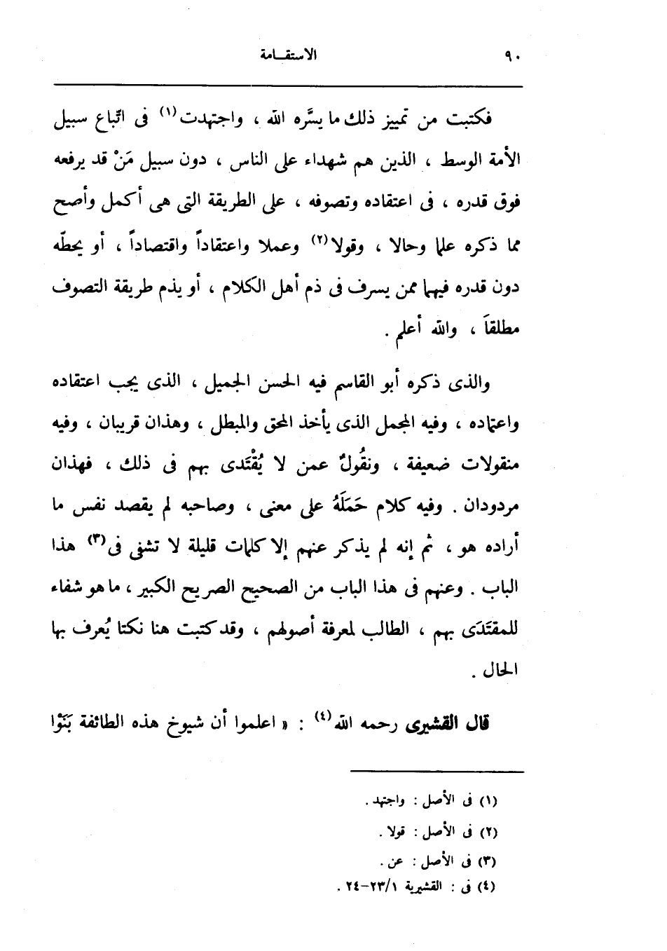 فَكتبت من تَمْيِيز ذَلِك مَا يسره الله وَاجْتَهَدت فِي اتِّبَاع سَبِيل الْأمة الْوسط الَّذين هم شُهَدَاء على النَّاس دون سَبِيل من قد يرفعهُ فَوق قدره فِي اعْتِقَاده وتصوفه على الطَّرِيقَة الَّتِي هِيَ أكمل وَأَصَح مِمَّا ذكره علما وَحَالا وقولا وَعَملا واعتقادا واقتصادا أَو يحطه دون قدره فيهمَا مِمَّن يسرف فِي ذمّ أهل الْكَلَام أَو يذم طَريقَة التصوف مُطلقًا وَالله أعلم