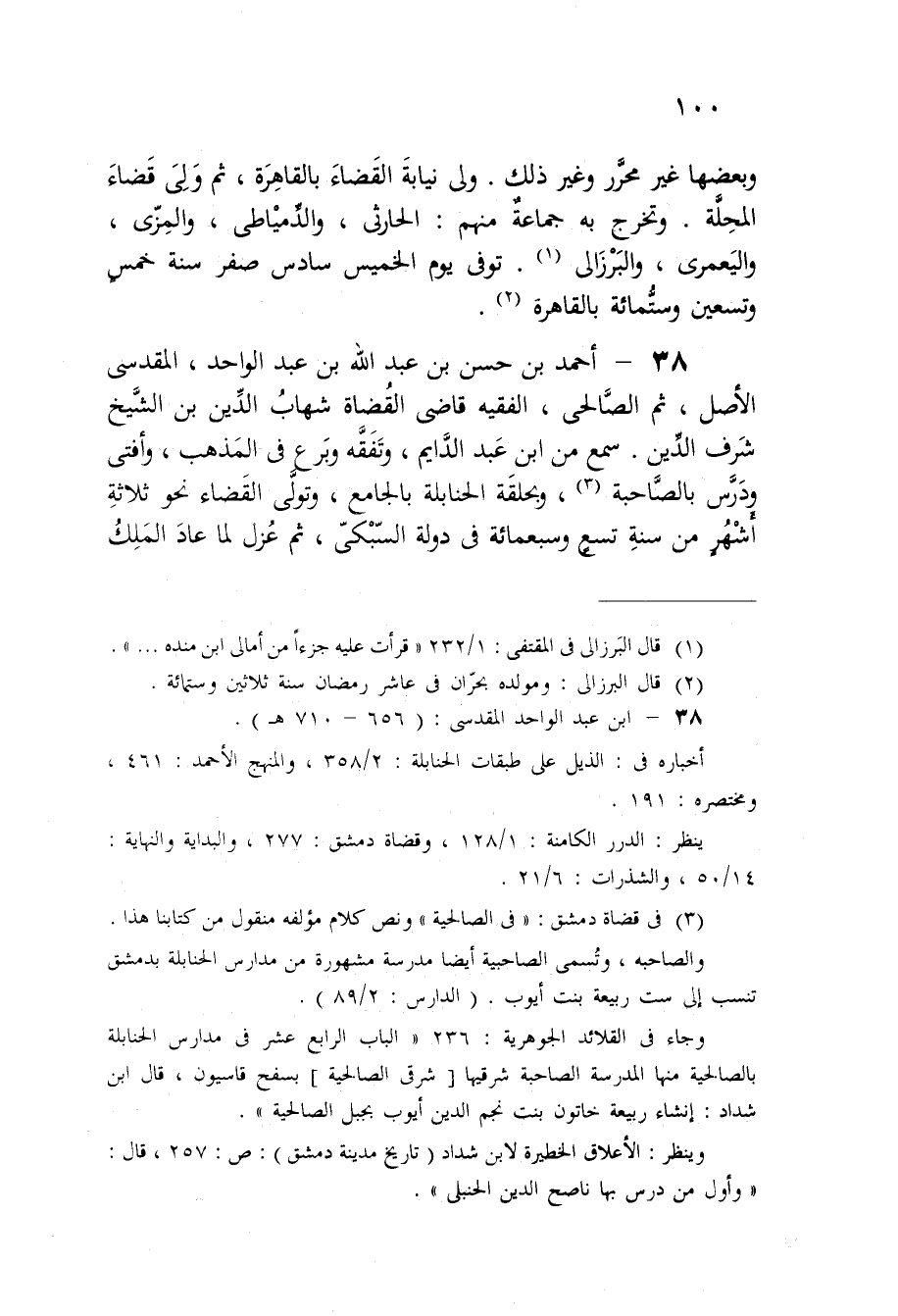 38 - أَحْمد بن حسن بن عبد الله بن عبد الْوَاحِد المقدسى الأَصْل ثمَّ الصالحى الْفَقِيه قاضى الْقُضَاة شهَاب الدّين بن الشَّيْخ شرف الدّين