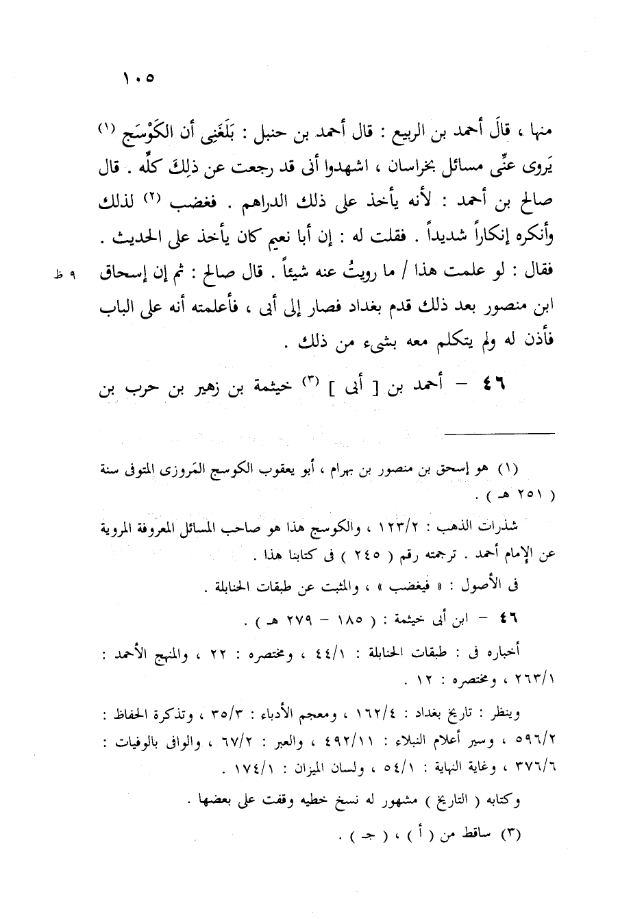 46 - أَحْمد بن أَبى خَيْثَمَة بن زُهَيْر بن حَرْب بن