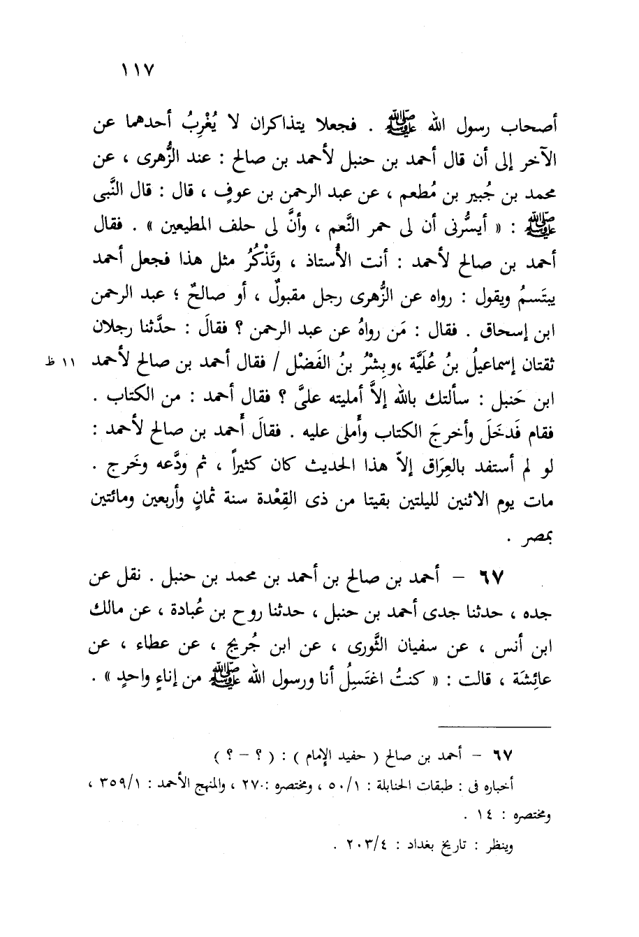67 - أَحْمد بن صَالح بن أَحْمد بن مُحَمَّد بن حَنْبَل