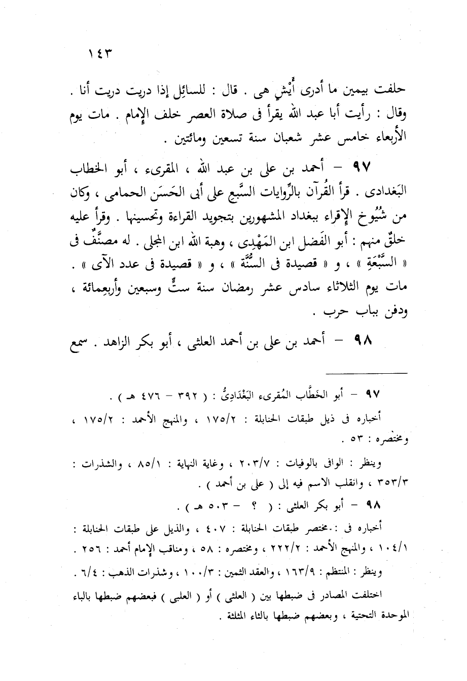 97 - أَحْمد بن على بن عبد الله المقرىء أَبُو الْخطاب البغدادى