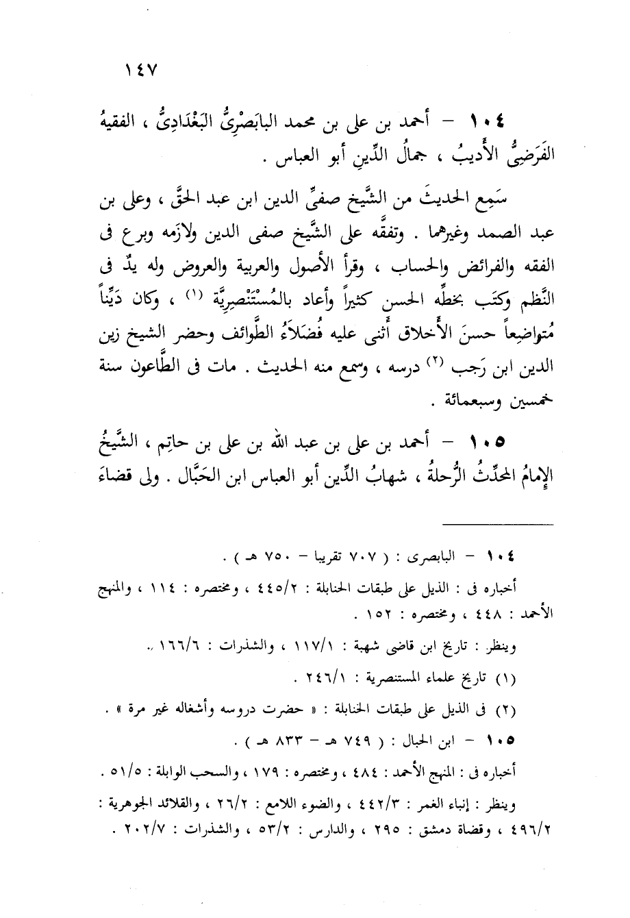104 - أَحْمد بن على بن مُحَمَّد البابصرى البغدادى الْفَقِيه الفرضى الأديب جمال الدّين أَبُو الْعَبَّاس