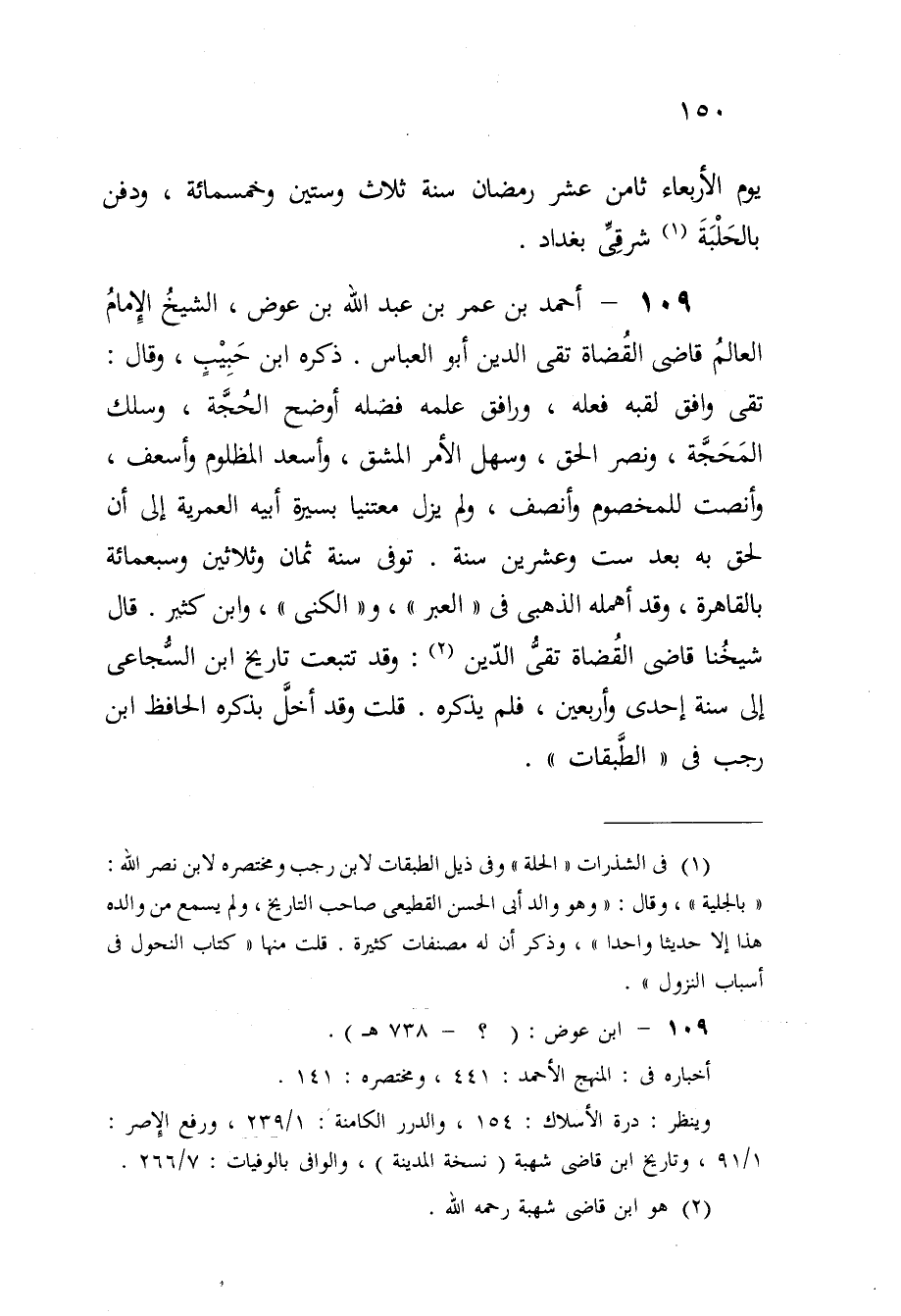 109 - أَحْمد بن عمر بن عبد الله بن عوض الشَّيْخ الإِمَام الْعَالم قاضى الْقُضَاة تقى الدّين أَبُو الْعَبَّاس