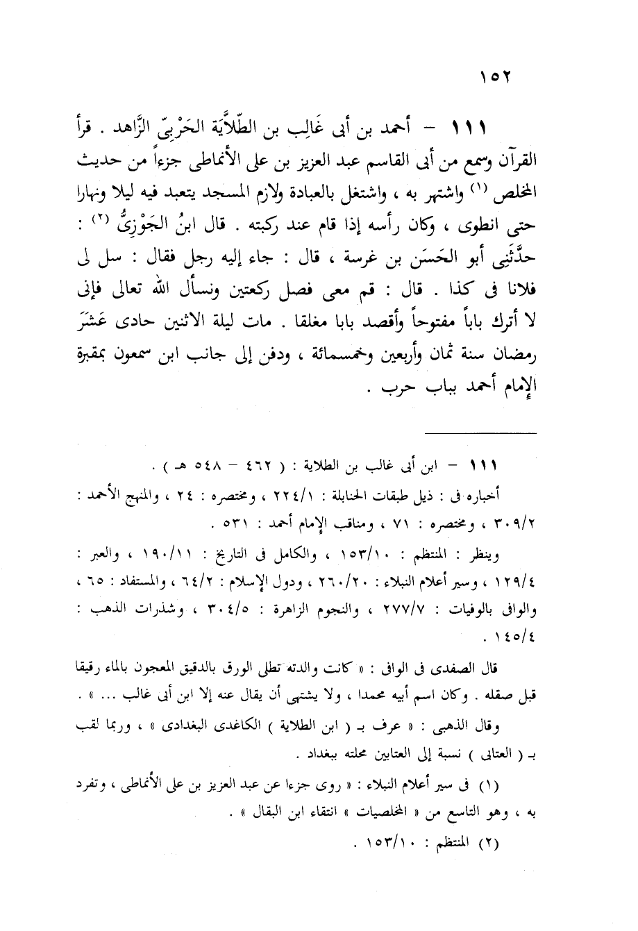 111 - أَحْمد بن أَبى غَالب بن الطلاية الحربى الزَّاهِد
