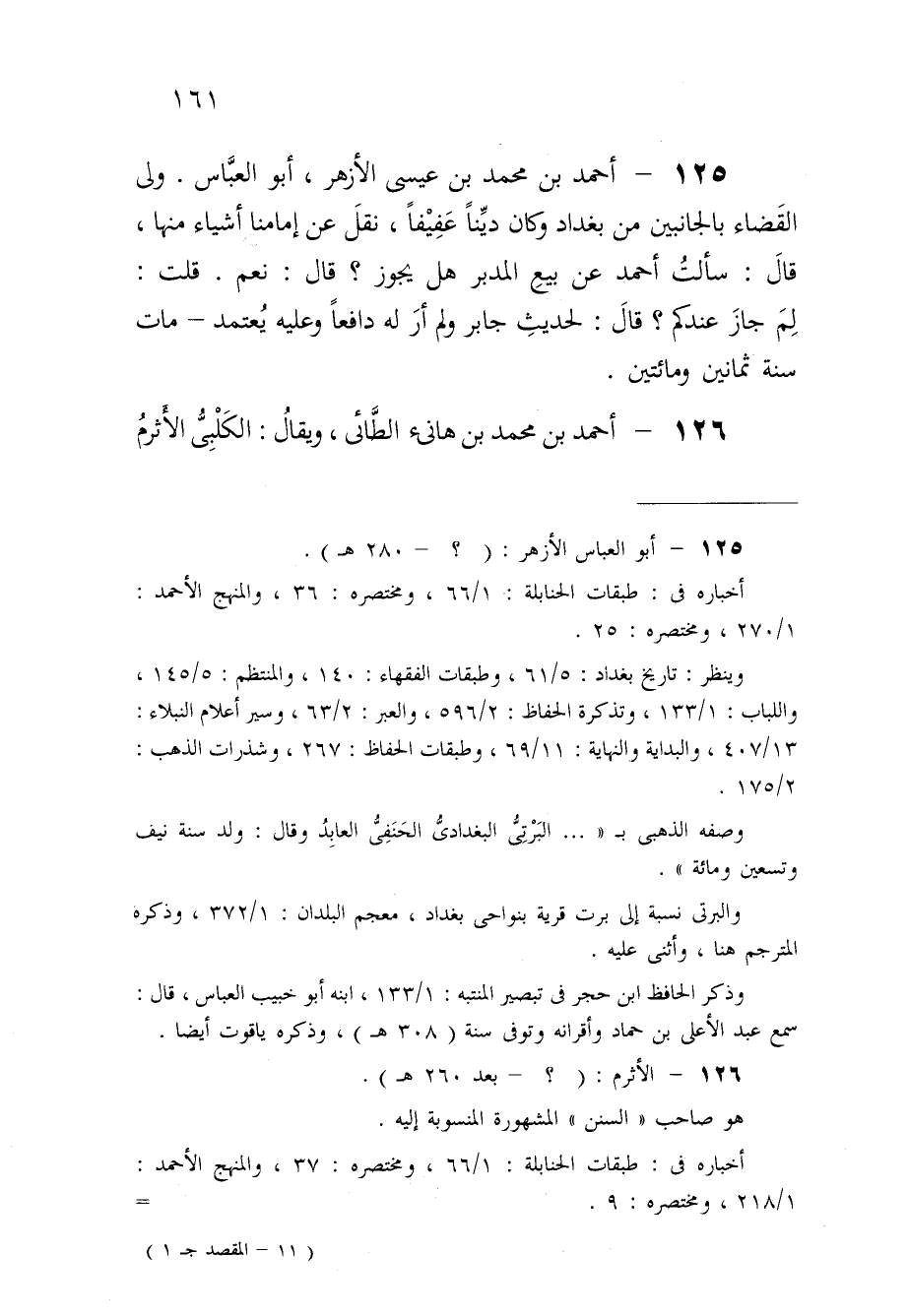 126 - أَحْمد بن مُحَمَّد بن هانىء الطائى وَيُقَال الكلبى الْأَثْرَم