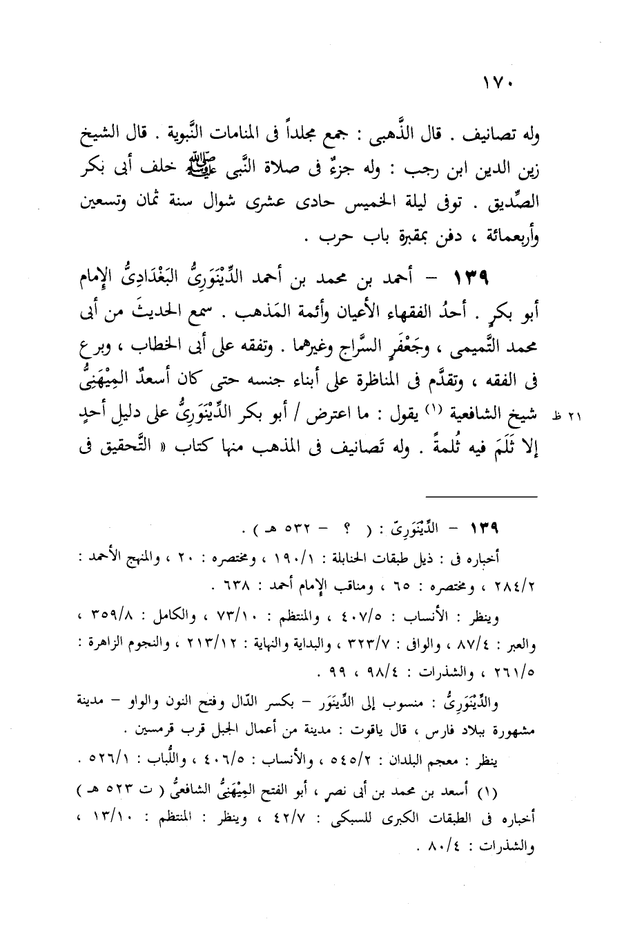 139 - أَحْمد بن مُحَمَّد بن أَحْمد الدينورى البغدادى الإِمَام ابو بكر