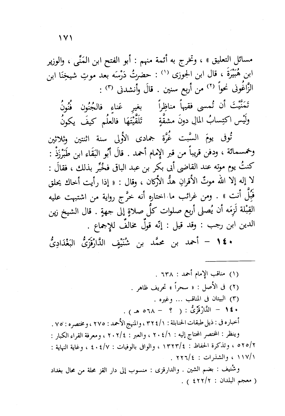 140 - أَحْمد بن مُحَمَّد بن شنيف الدارقزى البغدادى